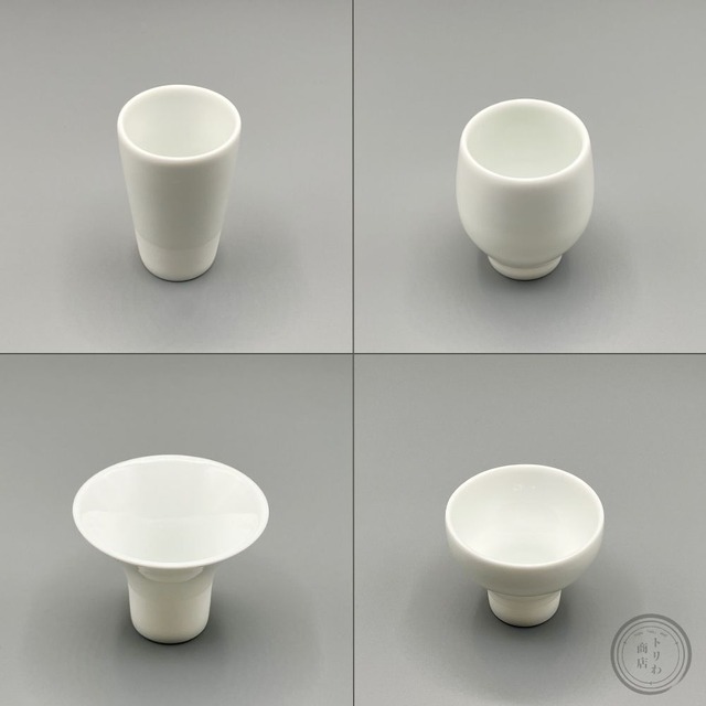 日本酒をもっと身近に楽しんでもらいたいという作り手の思いがこめられた4種の盃。 同じ日本酒も、盃を変えて飲み比べると「あら不思議!」 ワイングラスのように、盃の形によってお酒の香りや味の感じ方が変わります。 こちらのサイズはお酒を少しずつ飲む、利き酒に適したサイズです。 自分好みの形を探したり、利き酒ならぬ、"利き盃"をしたり。 お友達が集まる日本酒会やアウトドアで、 ワイワイと日本酒を楽しんでみてください。 ストレート:「すっきり、さっぱり」飲める盃 ツボミ:「濃厚をチビチビ」と飲める盃 ラッパ:「とにかく香り」を楽しめる盃 ワングリ:「しっかりと旨み」を味わえる盃 【サイズ】 ストレート:直径45×高さ70(mm) 満水時55 ml ツボミ:直径50×高さ60(mm) 満水時60 ml ラッパ:直径70×高さ55(mm) 満水時55 ml ワングリ:直径60×高さ50(mm) 満水時55 ml 【食洗器】OK 【電子レンジ】OK 【パッケージ】個別箱あり