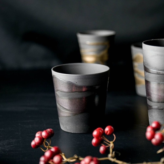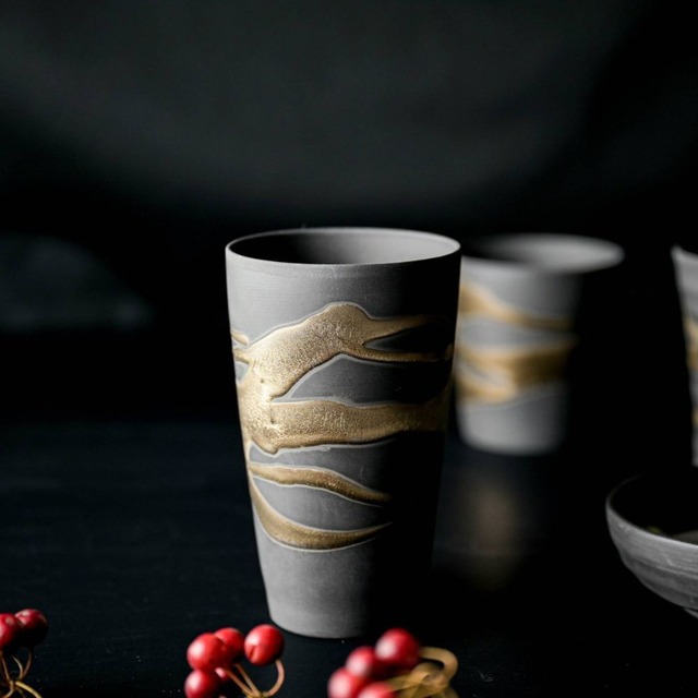 一つ一つ異なる表情を見せる、あなただけの金銀流し。 職人の手仕事による金と銀の釉薬が、唯一無二の個性を生み出します。 きめ細やかな黒土を薄く引き、焼き締めることで、ビールの泡はよりクリーミーに。 質感のあるカップに響く氷の音が、至福のひとときを演出します。 釉薬の濃淡や自然な模様が織りなす、美しさと温もりをお楽しみください。 (釉薬の濃淡、たれ、溜まり、とび、ピンホール等焼き物の個性の大きい器です。 あらかじめご了承ください) 【サイズ】幅/約9 x 9 cm 高さ/約 9cm 【容量】約350 ml(満水時) 【重量】約150 g 【素材】陶器・日本製/美濃焼 【質感】ざらざら 【電子レンジ】OK 【家庭用食洗機】OK 【パッケージ】個別箱なし(梱包材に包んで発送します) 【おすすめ用途】ロックカップ、焼酎カップ、デザートカップ 【シリーズ】金銀流し