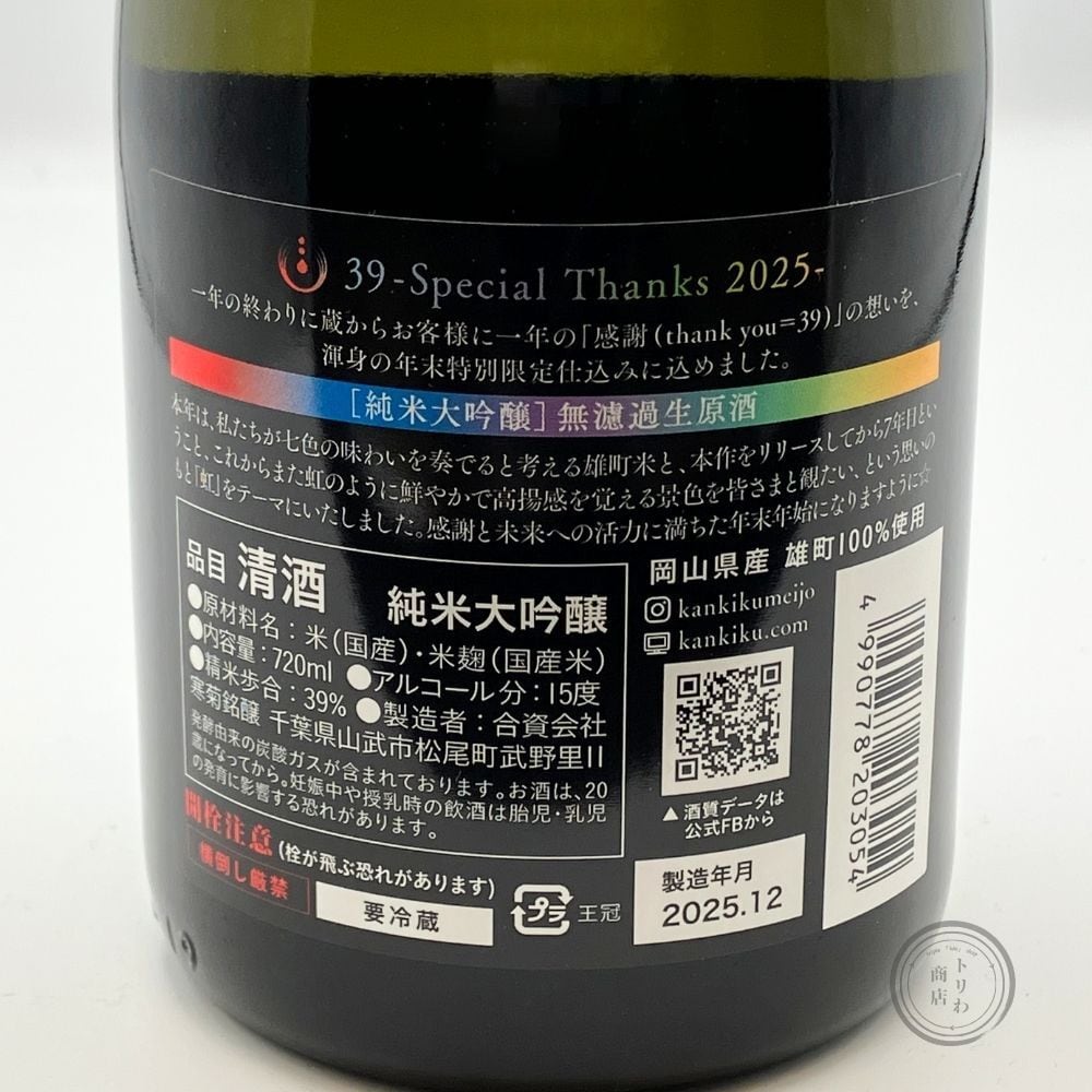 寒菊 39 -Special Thanks- 純米大吟醸 無濾過生原酒 [千葉] / 720 ml