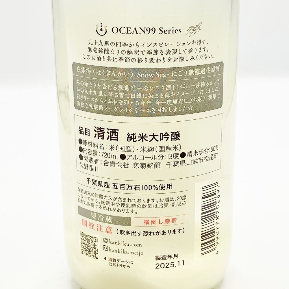 寒菊 Ocean99 白銀海(はくぎんかい) -Snow Sea- 純米大吟醸 にごり無濾過生原酒 [千葉] / 720 ml