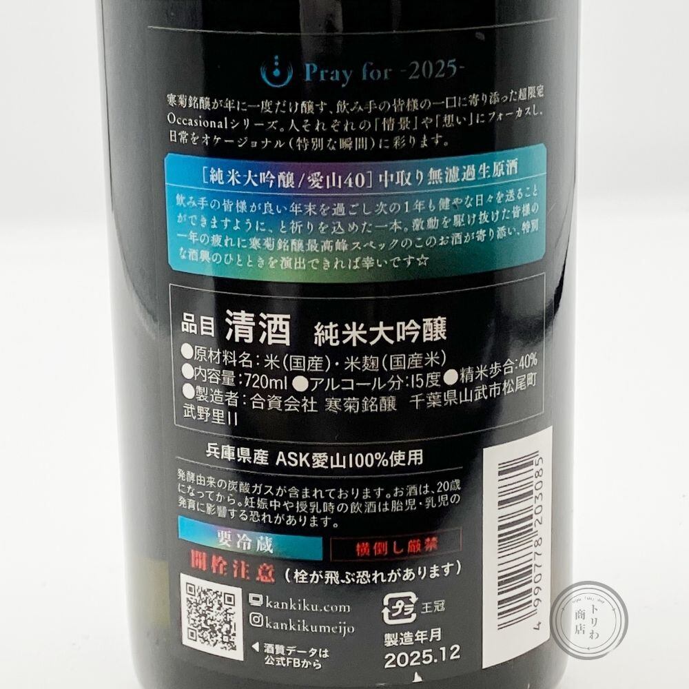 寒菊 Pray for 純米大吟醸 中取り無濾過生原酒 [千葉] / 720 ml