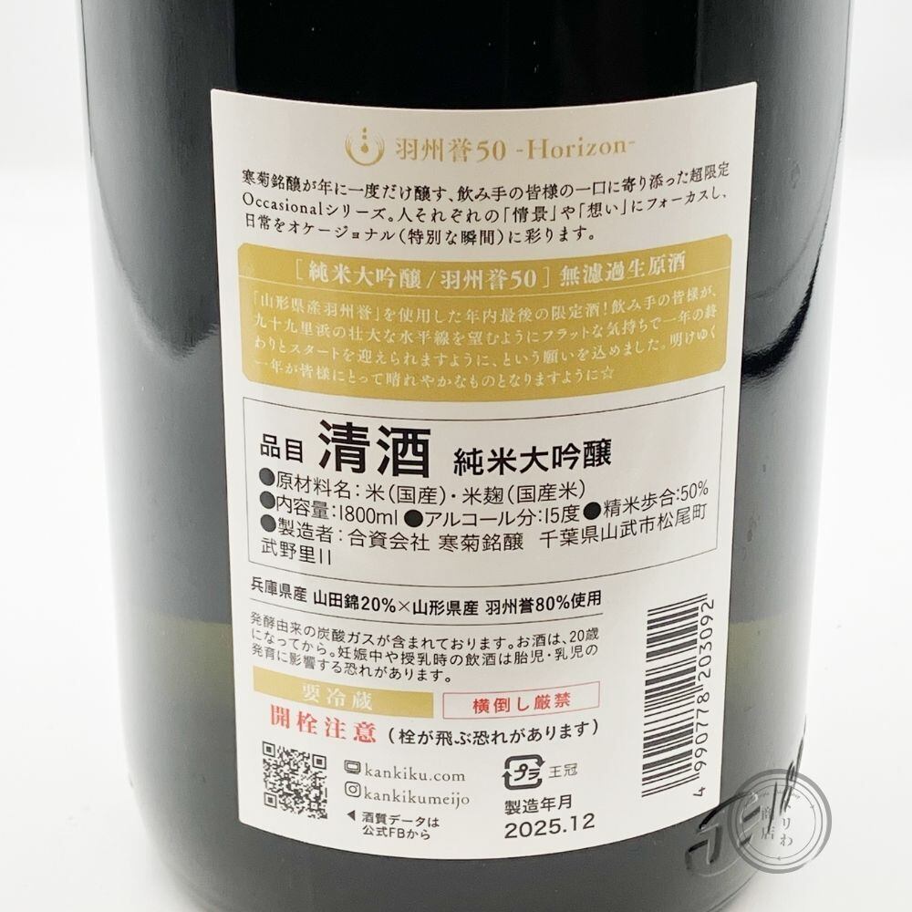 寒菊 羽州誉 Horizon 純米大吟醸 無濾過生原酒 [千葉] / 1800 ml