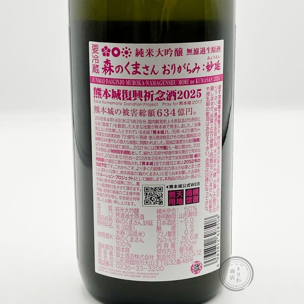 栄光冨士 森のくまさん おりがらみ 妙延 純米大吟醸 無濾過生原酒 [山形] / 720 ml