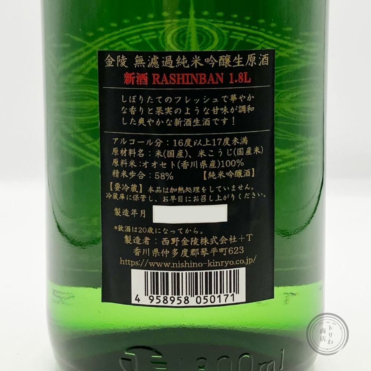 金陵 羅針盤 純米吟醸 無濾過生原酒 [香川] / 1800 ml