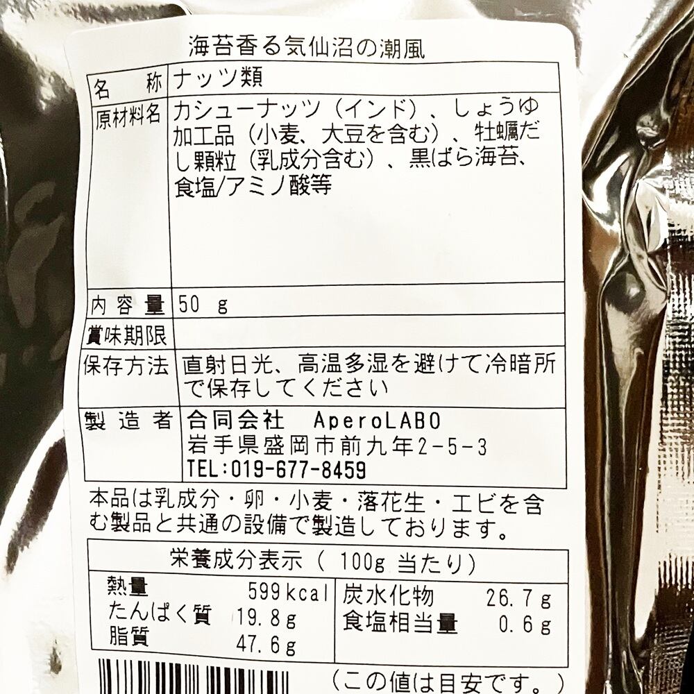 VEGTUS 海苔香る気仙沼の潮風 カシューナッツ 50 g