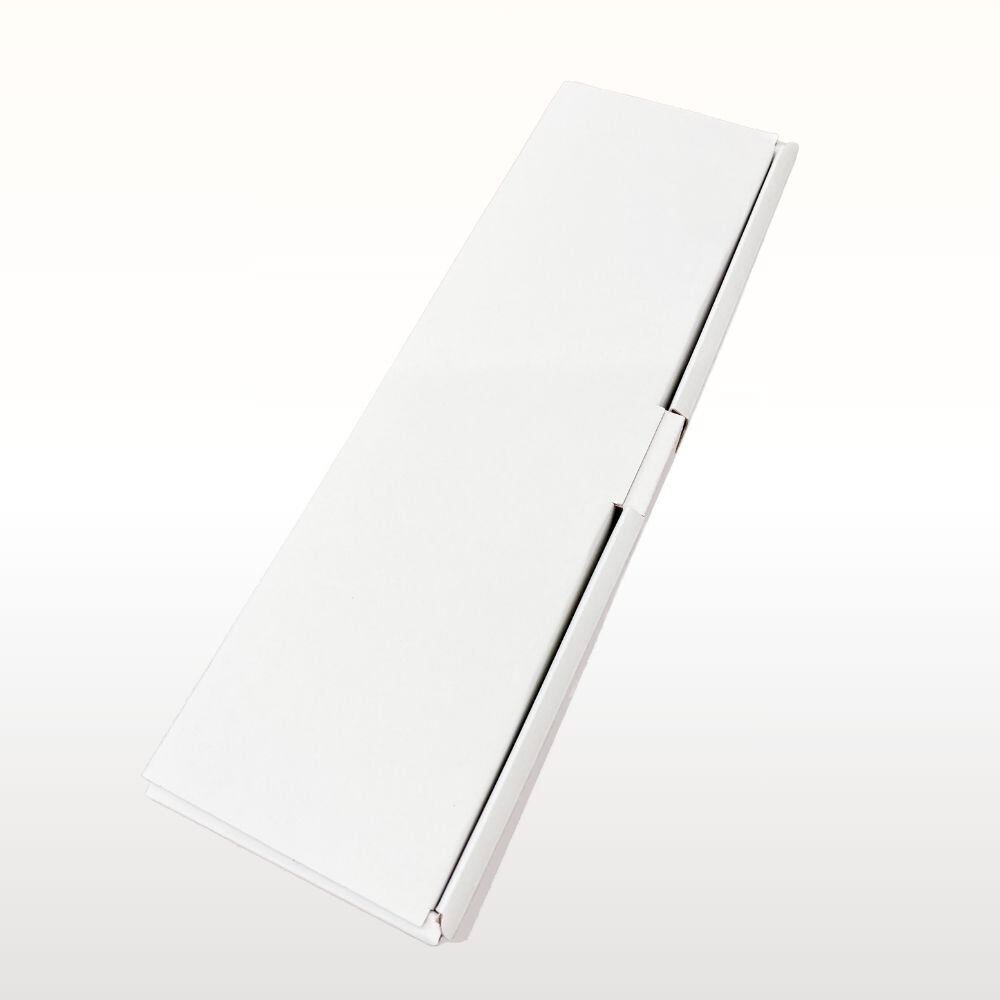 外側は白、内側はエンジ色のボックスです。